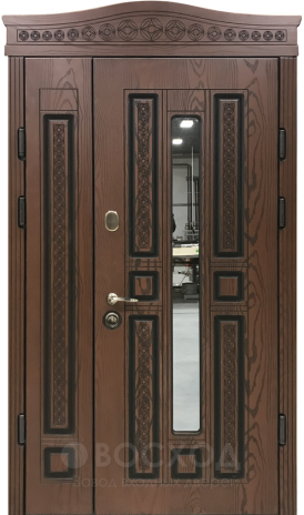 Каркас из профильной трубы и стальной лист толщиной 2 мм создают основу, способную выдержать серьезные нагрузки и попытки взлома, а дополнительные ребра жесткости делают конструкцию еще более устойчивой. Металлическая дверь в коттедж с МДФ №5 облицована панелями МДФ с покрытием ПВХ, что придает ей современный внешний вид и защищает поверхность от мелких повреждений и перепадов температуры. Такая отделка удобна в уходе и сохраняет первоначальный облик долгие годы. Два контура резиновых уплотнителей гарантируют плотное прилегание и комфорт при закрывании, снижая проникновение холода и шума. За безопасность отвечают два надежных замка турецкого производства Kale Kilit с системой ригелей, а при необходимости возможна замена на премиальные модели или электронные варианты. Конструкция легко адаптируется под индивидуальные требования: добавление стеклопакета, кованых элементов, зеркала или даже интеграция видеодомофона превращают дверь в стильный и функциональный элемент входной группы.