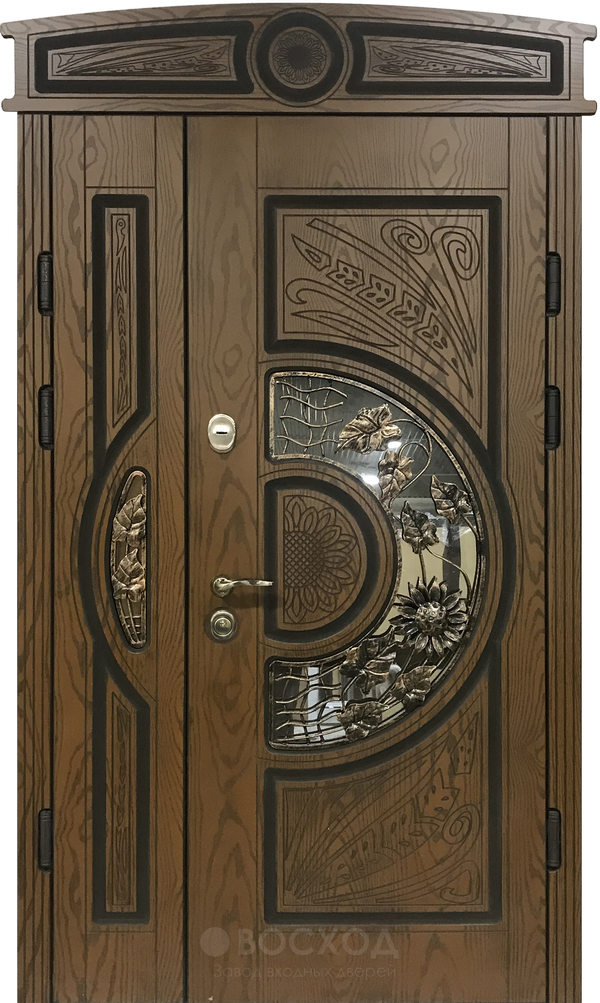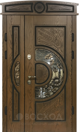 Стальная основа из профильной трубы и лист металла толщиной 2 мм обеспечивает надежность конструкции, а ребра жесткости усиливают её устойчивость к нагрузкам. Входная дверь для коттеджа №7 облицована панелями из натурального дерева, благодаря чему она сочетает в себе прочность металла и теплоту древесных оттенков. Такая отделка выглядит престижно и органично вписывается в архитектуру загородного дома, при этом устойчива к царапинам и долговременно сохраняет привлекательный вид. Два контура уплотнителей из резины обеспечивают плотное прилегание полотна и защищают от сквозняков. Для большего комфорта можно дополнить дверь утеплителем из минваты или пенопласта, что сделает её энергоэффективной и более комфортной в использовании в холодное время года. Массивный внешний облик в сочетании с продуманной конструкцией превращает эту модель в достойное решение для входной группы коттеджа.