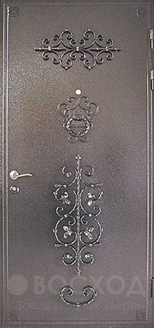 Для частного дома важно, чтобы дверь была не только прочной, но и визуально выделялась, подчёркивая характер фасада. Именно такую задачу решает металлическая конструкция с декоративной ковкой, где строгая сталь гармонично сочетается с художественными элементами. Наружная поверхность покрыта молотковым напылением — практичное решение, устойчивое к осадкам, царапинам и перепадам температуры, благодаря чему дверь сохраняет презентабельный вид годами. Изнутри используется накладка МДФ, создающая уют и тёплое ощущение домашнего пространства. Дверь металлическая с ковкой №4 выполнена из профильной трубы и листа стали толщиной 2 мм, усиленной рёбрами жёсткости, поэтому конструкция надёжно выдерживает нагрузки. Два контура резинового уплотнителя защищают от сквозняков, а комплект замков российского производства обеспечивает высокий уровень безопасности. Возможность комбинировать отделку, добавить зеркало, стеклопакет или видеодомофон делает эту модель универсальной и гибкой для любых пожеланий хозяина.