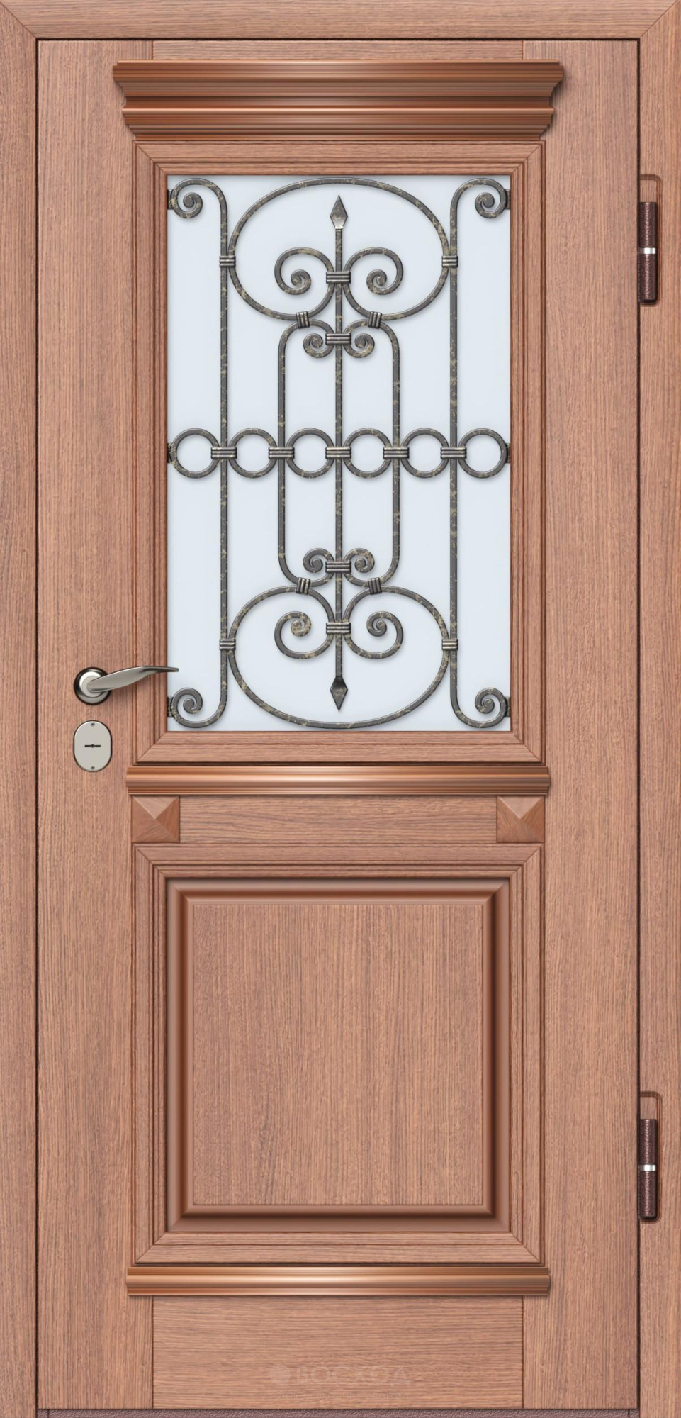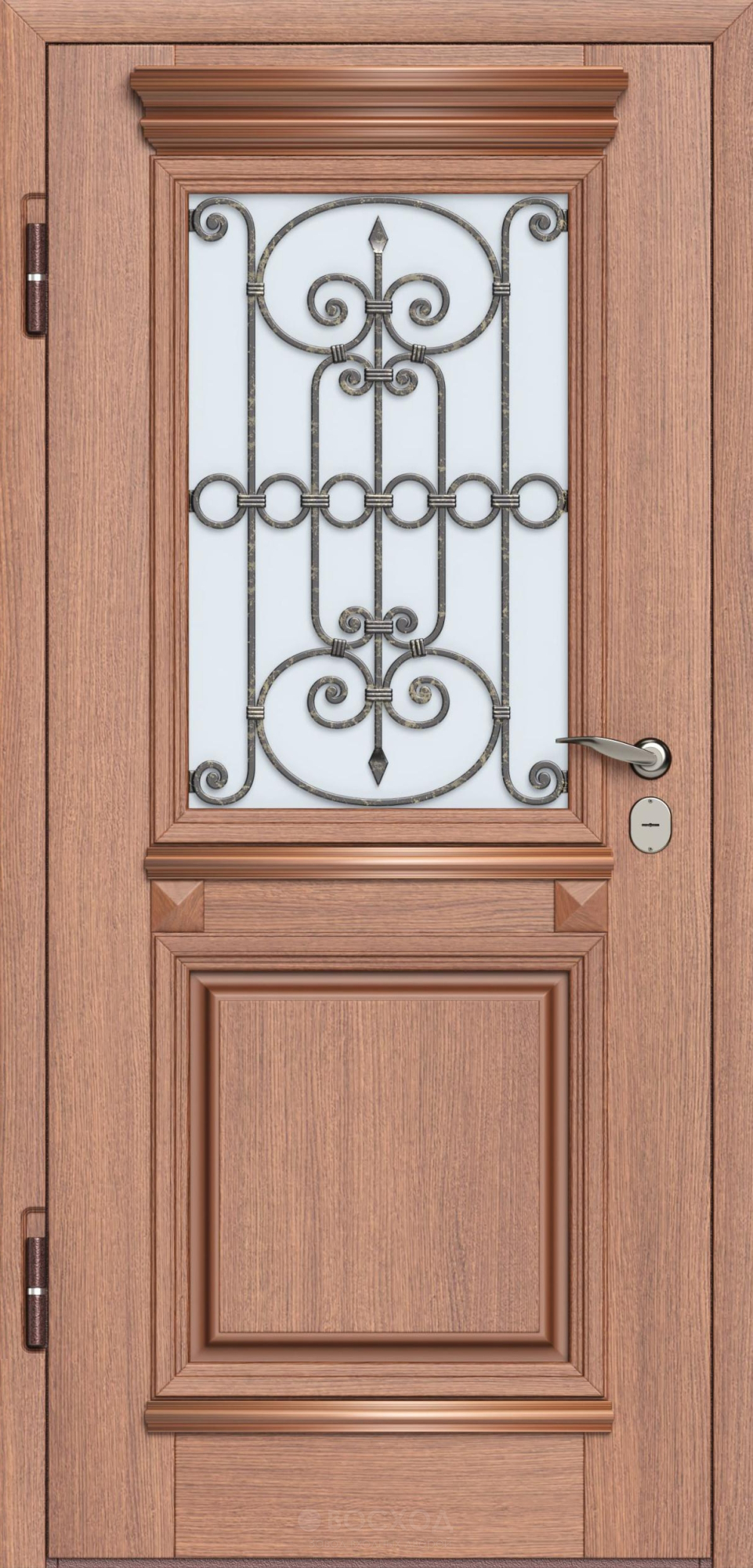 Входная дверь в дом с терморазрывом №2 — это надежный и стильный выбор для частных домов и коттеджей. Прочный каркас из оцинкованной стали толщиной 1,5 мм и усиление профильными трубами обеспечивают долговечность и безопасность. Особенность этой двери — терморазрыв, который эффективно предотвращает теплопотери и обеспечивает защиту от холода. Внешняя и внутренняя отделка выполнены из массива дерева, что придает двери роскошный и натуральный вид, а ковка добавляет элегантности. Пенопласт повышенной плотности и многоконтурное магнитное уплотнение гарантируют отличную шумо- и теплоизоляцию, создавая комфорт в вашем доме. Этот продукт сочетает в себе эстетическую привлекательность и функциональность, обеспечивая надежную защиту и уют.