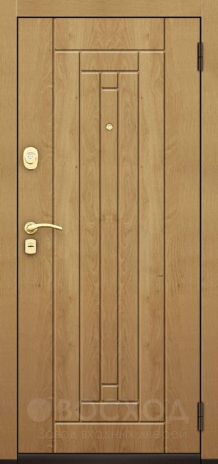 Для частного дома особенно важно, чтобы входная дверь не только защищала от посторонних, но и справлялась с капризами погоды. Массивная конструкция из цельногнутого металла толщиной 150 мм с рёбрами жёсткости и противосъёмными блокираторами внушает уверенность, а внутри скрыт утеплитель из плотного пенопласта. Ключевое преимущество — наличие терморазрыва в коробке и полотне: такая технология полностью исключает промерзание и образование конденсата, сохраняя в доме стабильное тепло. Наружная дверь от холода №35 отделана панелями МДФ с покрытием ПВХ, устойчивым к влаге, царапинам и перепадам температуры. Эта облицовка рассчитана на уличные условия эксплуатации и позволяет двери долго оставаться презентабельной. При необходимости её можно дополнить стеклопакетом, ковкой или зеркалом, превратив в не только функциональный, но и выразительный элемент фасада.