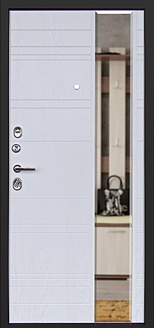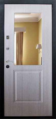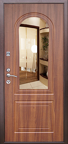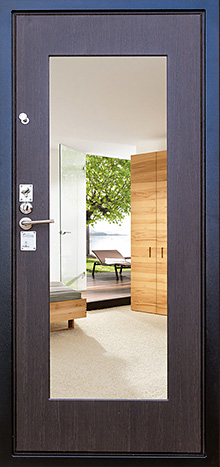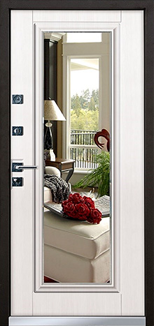 Металлические двери с зеркалом внутри – многофункциональные изделия. Помимо основных назначений: защита помещения от вандализма, обеспечение достойной теплоизоляции, они выполняют другие функции – украшают дизайн интерьера и отражают хозяев квартиры, когда нужно поправить причёску или одежду, сделать макияж и т. д. Это очень удобно, ведь в коридорах зеркальный элемент является необходимым. Это также очень выгодно: недорогие конструкции оснащены всем необходимым.