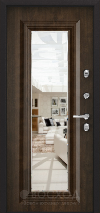 Контраст венге и ясеня в отделке создаёт выразительный и современный образ, который одинаково уместен в квартире, доме или офисном помещении. Дверь с зеркалом и глазком №57 сочетает практичность и стиль: зеркало помогает визуально расширить пространство, а глазок обеспечивает дополнительный контроль за происходящим снаружи. Конструкция собрана на основе профильной трубы с листом стали толщиной 2 мм и усилена рёбрами жёсткости, что гарантирует прочность и стойкость к нагрузкам. Отделка выполнена плитами МДФ, которые не только выглядят эстетично, но и защищены от царапин и потери цвета, сохраняя первоначальный вид долгие годы. Два контура уплотнения из резины препятствуют проникновению сквозняков и пыли, а при необходимости дверь можно дополнить шумо- и теплоизоляцией. Такой вариант органично объединяет надёжность металла и удобство повседневного использования, предлагая функциональность без ущерба для дизайна.