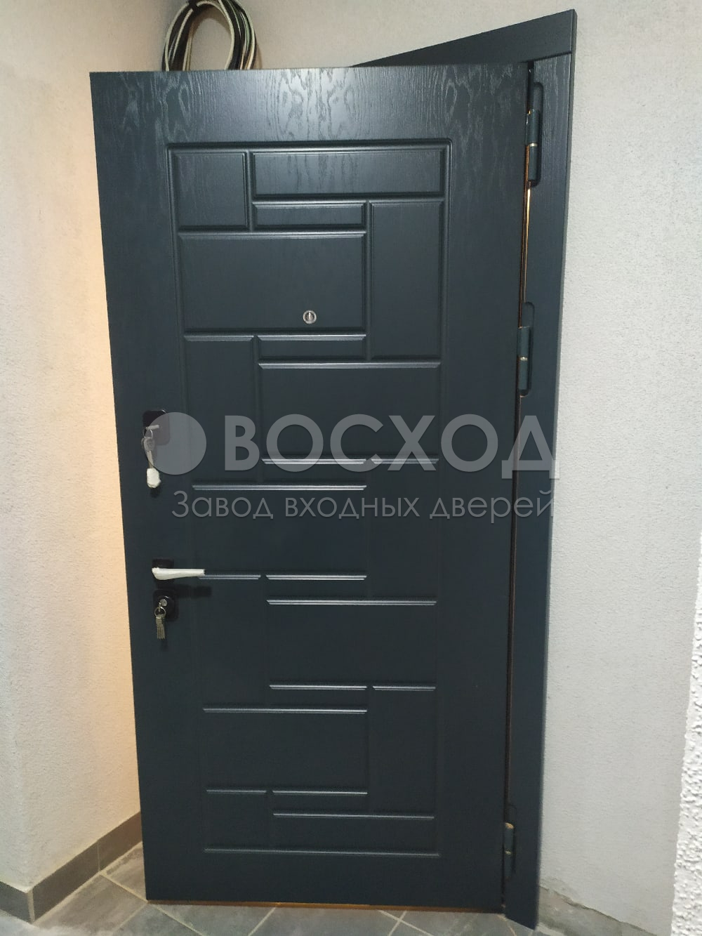 Однопольная дверь с зеркалом наполовину (чёрный / венге) №71 создана для тех, кто ценит практичность и визуальный эффект. Контраст матового чёрного с благородным оттенком венге смотрится современно и универсально: дверь одинаково гармонично вписывается в частный дом, квартиру или офис. Снаружи металл защищён молотковым напылением, которое не боится царапин, влаги и перепадов температуры, а значит, внешний вид сохранится на долгие годы. Внутри — плита МДФ, задающая интерьеру уют и добавляющая звукоизоляции. Зеркальная вставка наполовину полотна делает прихожую светлее и удобнее, избавляя от необходимости в отдельном зеркале. Конструкция собрана из профильной трубы с листом стали толщиной 2 мм и усилена ребрами жёсткости, что гарантирует надёжность и устойчивость к взлому. Два замка — сувальдный Просам и цилиндровый Мосрентген — обеспечивают дополнительную защиту, а двойной контур уплотнения защищает от сквозняков и посторонних шумов.