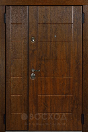 Двухстворчатые конструкции всегда придают входу солидность и удобство: легко занести габаритные вещи и подчеркнуть статус дома. Здесь классическая основа сочетается с практичными решениями — прочный каркас из профильной трубы 50х25 мм, стальной лист толщиной 2 мм и дополнительное усиление ребрами жёсткости. Благодаря накладкам МДФ с обеих сторон дверь сохраняет аккуратный и современный вид, при этом поверхность устойчива к случайным царапинам и не боится повседневных нагрузок. Входная двухстворчатая дверь в частный дом №18 оснащена двумя надежными замками российского производства — сувальдным Просам и цилиндровым Мосрентген, каждый с тремя ригелями для уверенной фиксации. Возможность подобрать отделку, добавить зеркало, стеклопакет или элементы ковки позволяет превратить изделие в индивидуальное решение под стиль фасада и интерьер. Такая дверь не только защищает, но и становится полноценной частью архитектуры дома.