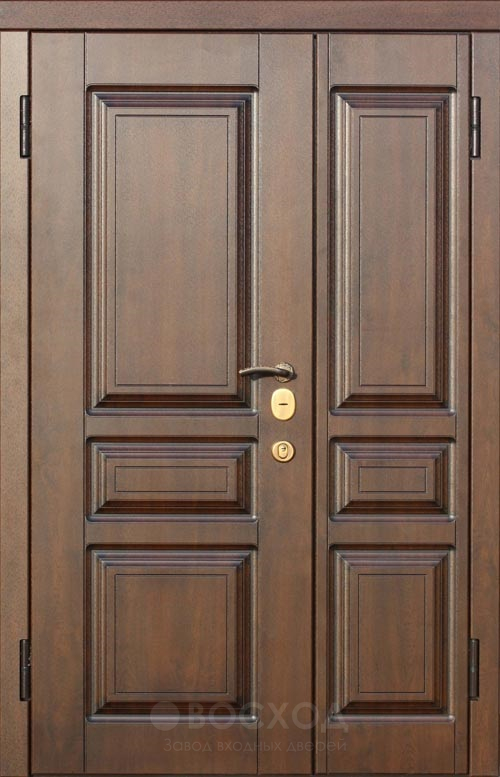 Конструкция для просторного входа всегда требует особого подхода: прочность металла, усиление профильными трубами и два надежных замка создают ощущение уверенности и безопасности. Панели МДФ снаружи и внутри позволяют двери долго сохранять презентабельный вид, не боясь случайных царапин или потери цвета, а при желании можно выбрать фактуру и оттенок под стиль фасада. Широкая дверь в загородный дом №20 подчеркивает масштаб и статус жилья, а благодаря двухстворчатой системе удобно заносить габаритные вещи без риска поцарапать проем. Два контура уплотнения и выбор направления открывания делают эксплуатацию комфортной, а опции вроде стеклопакета, ковки или зеркала добавляют индивидуальности. Возможность установки современных замков и даже видеодомофона превращает изделие в современное и практичное решение для частного дома.