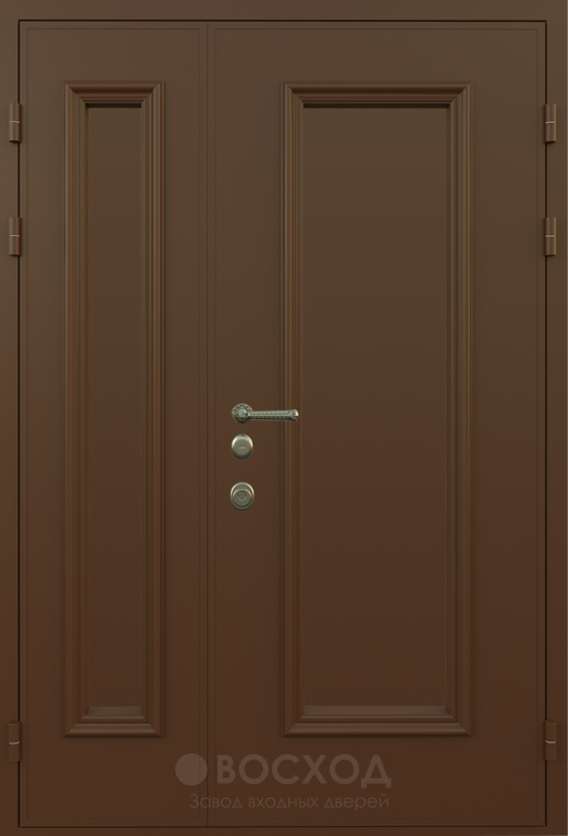 Двухстворчатая конструкция всегда смотрится солиднее и удобнее, чем стандартное полотно: больше простора для заноса мебели, и вид фасада приобретает внушительность. Металлическая дверь цвета молочный шоколад №28 сочетает надежность стального каркаса с элегантной отделкой панелями МДФ ПВХ. Такая облицовка устойчива к царапинам и сохраняет насыщенный оттенок долгие годы, а при этом выглядит теплее и уютнее, чем голый металл. Каркас и полотно собраны из профильной трубы 50х25 мм, внутри усиление ребрами жесткости, толщина стали 2 мм, плюс два контура уплотнения, исключающие сквозняки. За безопасность отвечают два замка: сувальдный Просам и цилиндровый Мосрентген, каждый с тремя стальными ригелями. При желании можно добавить зеркало, декоративное стекло или ковку, превратив практичное решение в выразительный элемент фасада.