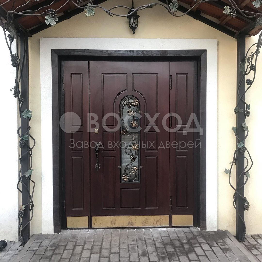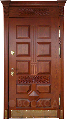 Надёжность и солидность — качества, которые ценятся в загородных домах и коттеджах, и здесь важна каждая деталь. Стальной каркас с рёбрами жёсткости и листом металла толщиной 2 мм обеспечивает прочность конструкции, а два контура уплотнения с резиновым профилем защищают от пыли и уличного шума. Особое внимание заслуживает металлическая дверь с филенчатым МДФ №15: массив дуба внутри и снаружи придаёт полотну статусный облик, подчёркивает натуральную текстуру древесины и гарантирует долговечность. Филенчатая отделка смотрится особенно выразительно, создавая эффект глубины и объёма, а при этом устойчива к механическим повреждениям и перепадам влажности. Для безопасности предусмотрены два итальянских замка Cisa — цилиндровый и сувальдный, каждый с множеством ригелей. Возможность выбрать направление и тип открывания, дополнить дизайн ковкой, стеклом или даже умным замком позволяет превратить эту модель в индивидуальное решение, которое объединяет эстетику и защиту.