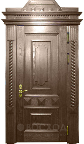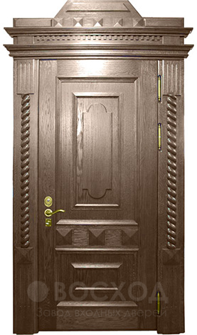 Эксклюзивная высокая дверь №16 создана для просторных входных групп в коттеджах и загородных домах, где стандартные размеры выглядят скромно. Увеличенная высота придаёт входу торжественность и подчёркивает архитектурный замысел, а прочная основа из стального каркаса с листом металла 2 мм и рёбрами жёсткости обеспечивает надёжность и защиту. Снаружи и внутри дверь отделана массивом дерева, что придаёт ей солидный вид и делает акцент на натуральной красоте фактуры. Такая поверхность устойчива к механическим повреждениям, не боится влаги и со временем приобретает ещё более благородный оттенок. Два контура уплотнения и резиновый уплотнитель помогают удерживать тепло и препятствуют проникновению шума. Эксклюзивность заключается не только в размере, но и в возможности выполнить отделку и дизайн по индивидуальному проекту, превращая дверь в центральный элемент фасада.