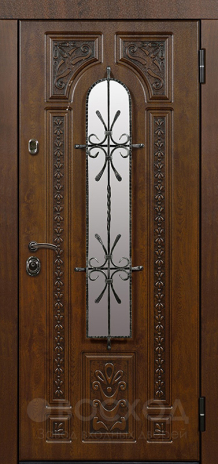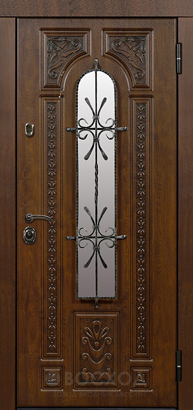 Сочетание декоративной выразительности и надежной конструкции превращает обычный вход в акцент фасада. Дверь входная с ковкой и МДФ с фрезеровкой №22 выделяется изысканным дизайном: плита МДФ с объемной фрезеровкой придает полотну глубину и фактурность, а кованые элементы добавляют индивидуальности и подчеркивают статус хозяев. При этом МДФ устойчив к механическим повреждениям, не боится перепадов температуры и долго сохраняет привлекательный внешний вид. За декоративным обликом скрыт прочный каркас из профильных труб и стальной лист толщиной 2 мм с ребрами жесткости, дополненный блокираторами и двумя контурами уплотнения. Итальянские замки Cisa — цилиндровый и сувальдный — усиливают защиту, а возможность выбора направления и типа открывания делает дверь удобной в эксплуатации. При желании конструкцию можно дополнить шумо- и теплоизоляцией, умными замками или декоративными опциями вроде стеклопакета и зеркала, создавая уникальное решение для частного дома или коттеджа.