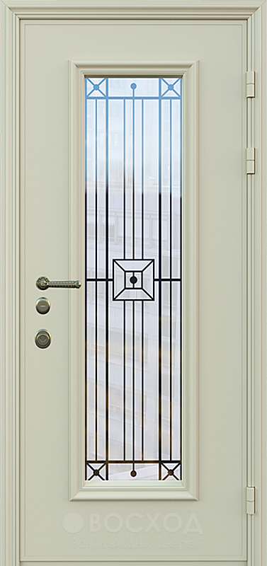 Входная коттеджная дверь со стеклом и решеткой №26 создана для частного дома: встречает светом, но держит дистанцию. Закаленное стекло защищено художественной ковкой — видно двор, а к посторонним не слишком гостеприимна. Снаружи и изнутри — накладки МДФ: аккуратная геометрия полотна, приятная тактильность и стабильный внешний вид без «волны». Жесткий каркас из профильной трубы 50×25 мм, полотно из той же трубы, лист стали 2 мм и ребра 40×25 мм работают на стойкость к попыткам взлома; блокираторы усложняют снятие. Два контура резинового уплотнения гасят сквозняки и шум. Терморазрыва нет, но можно добавить утепление плиты минваты или пенопласта. Размер — любой, как и ваши планы на фасад.