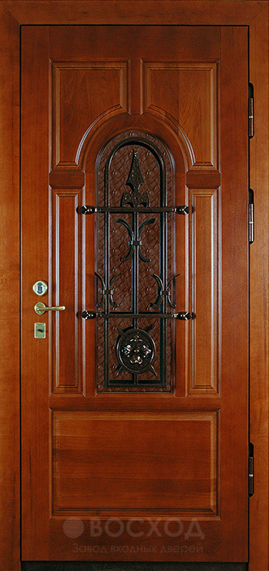 Дверь МДФ входная с коваными элементами №27 — это вариант для тех, кто ценит не только защиту, но и выразительный внешний облик. Кованые узоры превращают обычное полотно в архитектурный акцент, подчеркивающий статус коттеджа или загородного дома. Снаружи и внутри поверхность закрыта панелями МДФ с ПВХ-покрытием, которое уверенно переносит перепады температуры и сохраняет цвет без выгорания, а также защищает от царапин и мелких повреждений. Жесткая конструкция собрана на профильной трубе 50×25 мм, усилена ребрами и листом стали толщиной 2 мм, поэтому полотно не поведет ни от времени, ни от попыток взлома. Два контура уплотнения и резиновая прокладка исключают сквозняки, а при необходимости можно дополнить дверь утеплением. Размеры изготавливаются индивидуально, чтобы вход в дом выглядел так, как вы задумали.