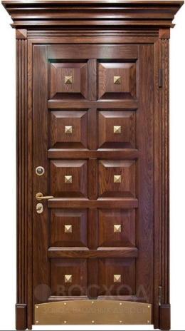 Дверь входная с капителью №6 создана для тех, кто ценит не только прочность, но и архитектурный штрих в экстерьере дома. Капитель придает полотну благородный вид и подчеркивает статус владельца, превращая обычный вход в выразительный акцент фасада. В отделке используется панель из натурального дерева — материал, который смотрится тепло и солидно, устойчив к царапинам и сохраняет форму при долгой эксплуатации. За внешней элегантностью скрывается каркас из профильных труб 50×25 мм с усилением ребрами жесткости и листом стали толщиной 2 мм, что делает дверь по-настоящему надежной. Два контура уплотнения и блокираторы повышают защиту от сквозняков и несанкционированного доступа, а размеры подбираются индивидуально под проем. Дополнительно возможна установка шумо- и теплоизоляции, превращающей эту дверь в красивый и функциональный барьер между улицей и домом.