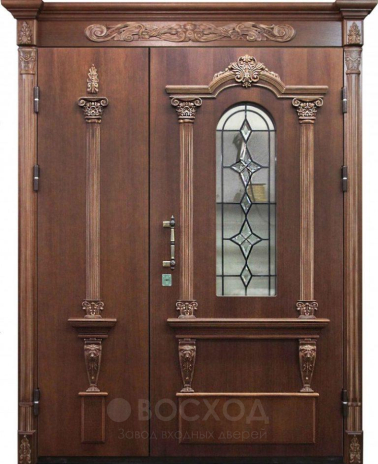 Витражная дверь №337 создана для тех, кто хочет добавить в дом не только надёжность, но и выразительный декоративный акцент. Панели из массива дерева формируют благородный облик и гармонично сочетаются с витражом, который пропускает мягкий свет и оживляет входную зону, не снижая при этом уровня приватности. Натуральное дерево стойко переносит перепады температуры и механические воздействия, сохраняя изысканный внешний вид на протяжении многих лет. В основе конструкции — стальной каркас с листом металла толщиной 2 мм и рёбрами жёсткости, обеспечивающими прочность и устойчивость к нагрузкам. Два контура уплотнения и система блокираторов делают эксплуатацию комфортной и безопасной, а при желании дверь можно дополнить шумо- или теплоизоляцией. Такое решение одновременно подчёркивает статус хозяев и дарит дому атмосферу уюта и света.