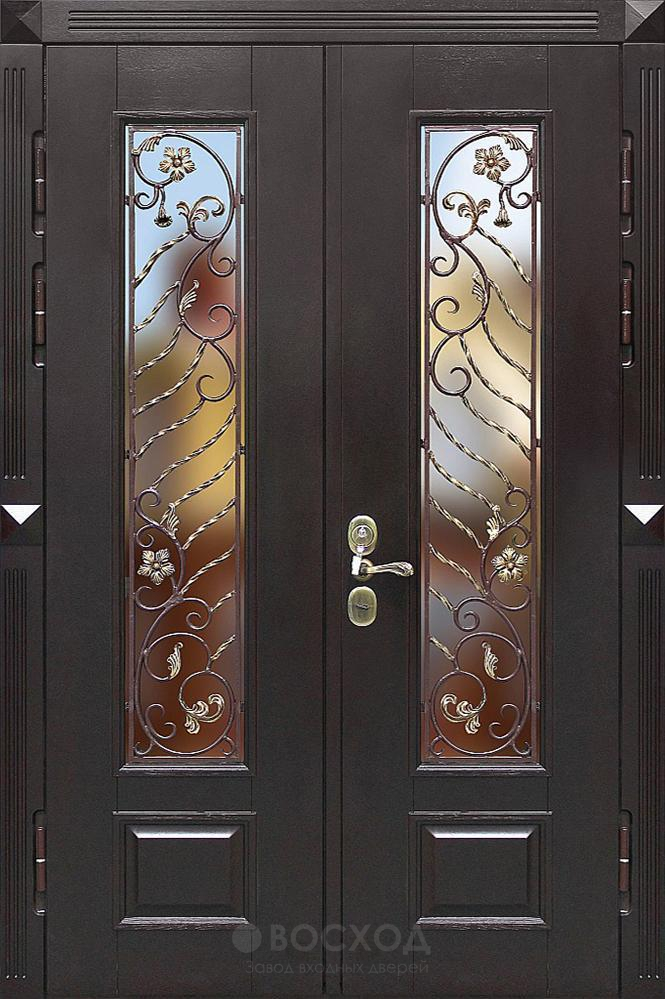 Стальная двойная дверь коричневого цвета №352 создана для просторных загородных домов, где ценят и надёжность, и эстетичный облик фасада. Конструкция собрана на основе прочного стального каркаса и листа металла толщиной 2 мм, усиленного жёсткими рёбрами, что обеспечивает долговечность и высокую защиту от внешних воздействий. Снаружи и внутри дверь облицована панелями из натурального дерева, которые придают поверхности тёплый коричневый оттенок, подчёркивающий респектабельность дома. Два контура резинового уплотнителя делают закрывание мягким и препятствуют проникновению сквозняков. При необходимости конструкция может быть дополнена утеплителем, повышающим комфорт в холодное время года. Двойной формат створок облегчает занос мебели и техники, а в повседневной эксплуатации позволяет использовать только одну половину. Такое решение объединяет функциональность и выразительный внешний вид, превращая вход в дом в элемент архитектурного акцента.