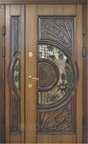 Большая дверь с коваными элементами №357 создана для тех, кто считает вход в дом не просто проходом, а частью архитектурного образа. Масштабное полотно на стальном каркасе с листом металла толщиной 2 мм и жёсткими рёбрами гарантирует надёжность и устойчивость к нагрузкам. С обеих сторон поверхность облицована массивом дуба — древесиной, которая славится прочностью и способностью десятилетиями сохранять благородный вид. Кованые элементы добавляют индивидуальности: узоры могут быть строгими или изящными, но всегда подчёркивают статус и вкус владельца. Два контура резинового уплотнителя обеспечивают плотное закрывание и защиту от сквозняков, а при необходимости дверь можно дополнить утеплителем для повышения комфорта. Такая модель одинаково уместна и в коттедже, и в загородном доме, превращая парадный вход в выразительный акцент, который сочетает безопасность, долговечность и художественный стиль.