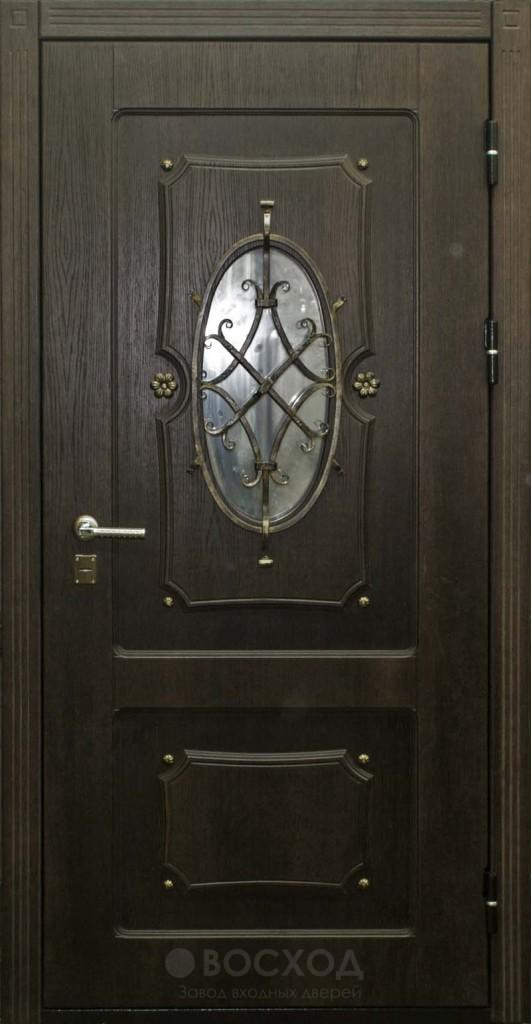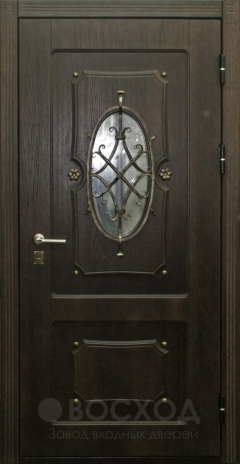 Фото стальная дверь Дверь с кованной решёткой №356 с отделкой Массив дуба