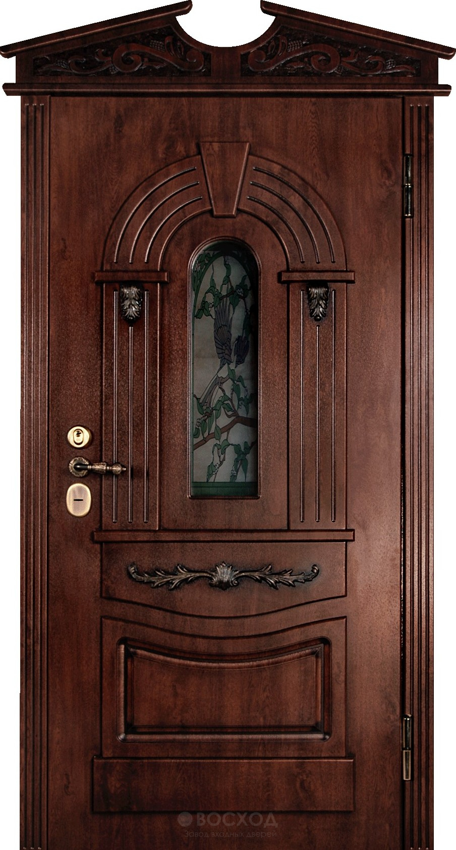 Фото стальная дверь Арочная парадная дверь №123 с отделкой Массив дуба