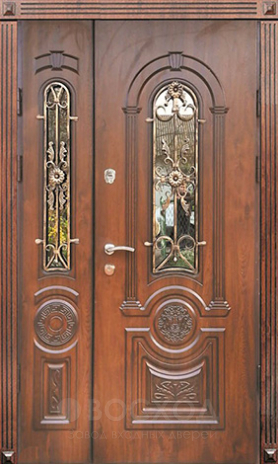 Сочетание стали и натурального дуба делает конструкцию одновременно прочной и благородной. Дверь со стеклопакетом для загородного дома №78 рассчитана на эксплуатацию в коттеджах и частных домах, где важна не только защита, но и эстетика фасада. Стальной каркас с листом металла толщиной 2 мм и рёбрами жёсткости обеспечивает надёжность, а массив дуба в отделке устойчив к атмосферным воздействиям и годами сохраняет свой внешний вид. Стеклопакет добавляет естественного света, создавая ощущение простора и уюта. Конструкция оснащена итальянскими замками Cisa — цилиндровым и сувальдным, что гарантирует многоуровневую защиту. Два контура уплотнения препятствуют сквознякам, а при желании дверь можно утеплить, добавить кованые элементы или зеркало. Такой вариант подчёркивает статус владельцев и делает вход в дом действительно выразительным.