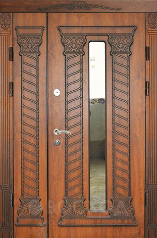 Фото стальная дверь Двойная дверь в дом №120 с отделкой Массив дуба