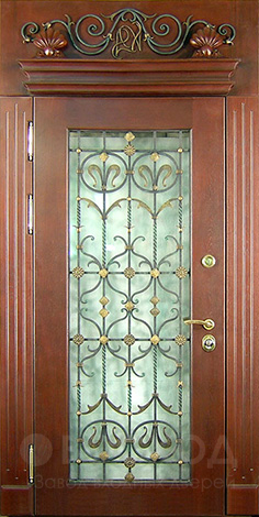 Фото стальная дверь Дверь с кованной решёткой №356 с отделкой Массив дуба