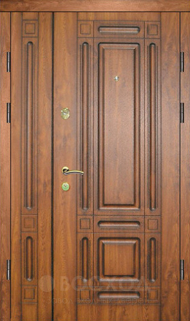 Входная дверь двойная в частный дом №94 создана для просторных проемов и подчеркивает архитектурную выразительность коттеджа. Двустворчатая конструкция на основе стального листа толщиной 2 мм и усиленных профильных труб обеспечивает надежную защиту и жесткость, а блокираторы препятствуют снятию полотна. Натуральное дерево в отделке с обеих сторон придает двери благородный вид, создавая гармонию между массивной основой и теплым внешним обликом. Такой материал устойчив к механическим повреждениям, сохраняет привлекательность при эксплуатации и органично смотрится в интерьере частного дома. Два контура уплотнения защищают от сквозняков, а при необходимости дверь можно утеплить минеральной плитой или пенопластом. Двойная конструкция не только удобна в использовании, но и смотрится солидно, подчеркивая статус и надежность жилища.