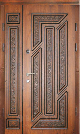 Стильный фасад дома требует достойного акцента, и дверь в дом входная двойная №95 прекрасно справляется с этой ролью. Массивная конструкция выполнена из цельногнутой оцинкованной стали толщиной 1,5 мм, усиленной профильными трубами и противосъёмными штырями, что делает её устойчивой и долговечной. Отделка дубовым массивом придает полотну солидность и теплоту, создавая гармонию между металлической основой и благородным деревом. Особое преимущество — наличие терморазрыва в коробке и полотне: он предотвращает промерзание зимой, исключает конденсат и помогает поддерживать стабильный микроклимат в доме. Тройной магнитный контур уплотнения совместно с утеплителем из пенопласта обеспечивает надежную защиту от холода и посторонних шумов. За безопасность отвечают два итальянских замка Cisa — цилиндровый и сувальдный, дополненные системой ригелей. Двустворчатая конструкция удобна в эксплуатации и придает входу в коттедж особую торжественность, подчеркивая статус и вкус владельцев.