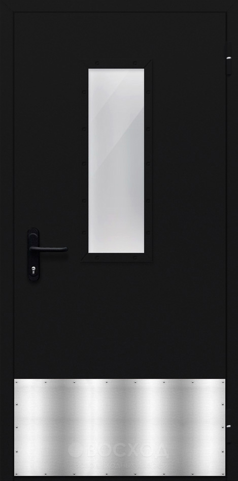 Дверь однопольная с отбойником из нержавейки №15 создана для помещений с интенсивной эксплуатацией, где важно сохранить аккуратный внешний вид и долговечность конструкции. Основой служит холоднокатаная сталь толщиной 1,5 мм, усиленная профильными трубами и противосъёмными штырями, благодаря чему дверь устойчива к нагрузкам и сохраняет жёсткость. Особое внимание заслуживает отбойник из нержавейки — практичный элемент, который защищает полотно от ударов тележек, ящиков или оборудования, продлевая срок службы и избавляя от лишних ремонтов. Внешняя и внутренняя поверхность покрыта нитроэмалью, стойкой к царапинам, перепадам температур и влаге, что позволяет двери долго сохранять свой первозданный вид. Заполнение полотна базальтовой плитой повышает тепло- и шумоизоляцию, а два контура уплотнения и термоактивная лента создают надежный барьер от дыма. Это решение для тех, кто ценит прочность, безопасность и продуманную функциональность.