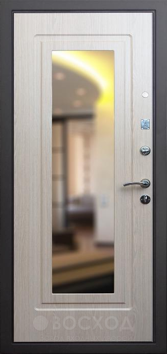 Дверь из стали 2 мм с зеркальной вставкой №22 — стильное и надежное решение для частного дома, квартиры или офиса. Внешняя и внутренняя отделка выполнены из МДФ, что придает двери прочность и современный вид, а зеркало в дизайне добавляет элегантности и визуально расширяет пространство. Каркас из профильной трубы 50х25 мм и лист металла толщиной 2 мм обеспечивают отличную защиту и долговечность. Для повышения шумоизоляции и теплоизоляции используется плита минваты или пенопласт, а два контура уплотнения гарантируют хорошую герметичность. Замки с тремя ригелями (сувальдный и цилиндровый) повышают безопасность, а дополнительные опции, такие как стеклопакет и кованые элементы, позволяют кастомизировать дверь под любой интерьер.