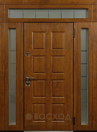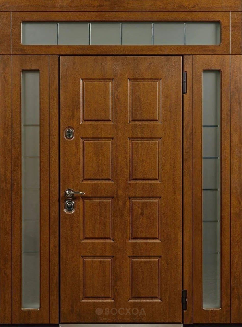 Металлическая дверь для таунхауса должна не только защищать, но и выглядеть достойно, ведь именно она формирует первое впечатление о доме. Надёжная конструкция на основе профильной трубы с усиленными рёбрами жёсткости и листом металла толщиной 2 мм гарантирует прочность и долговечность, а два контура уплотнения снижают проникновение шума и пыли. Отделка плитой МДФ с обеих сторон делает дверь визуально аккуратной и практичной: поверхность устойчива к царапинам, не выгорает и легко очищается от загрязнений. Входная дверь со стеклом для таунхауса №20 дополнена надежной системой замков: сверху установлен сувальдный Просам, снизу цилиндровый Мосрентген — оба российского производства и с тремя ригелями каждый. При желании можно разнообразить дизайн зеркалом, витражом или ковкой, а для современных решений — интегрировать видеодомофон. Такая дверь выглядит стильно и внушает доверие, сохраняя баланс между эстетикой и безопасностью.